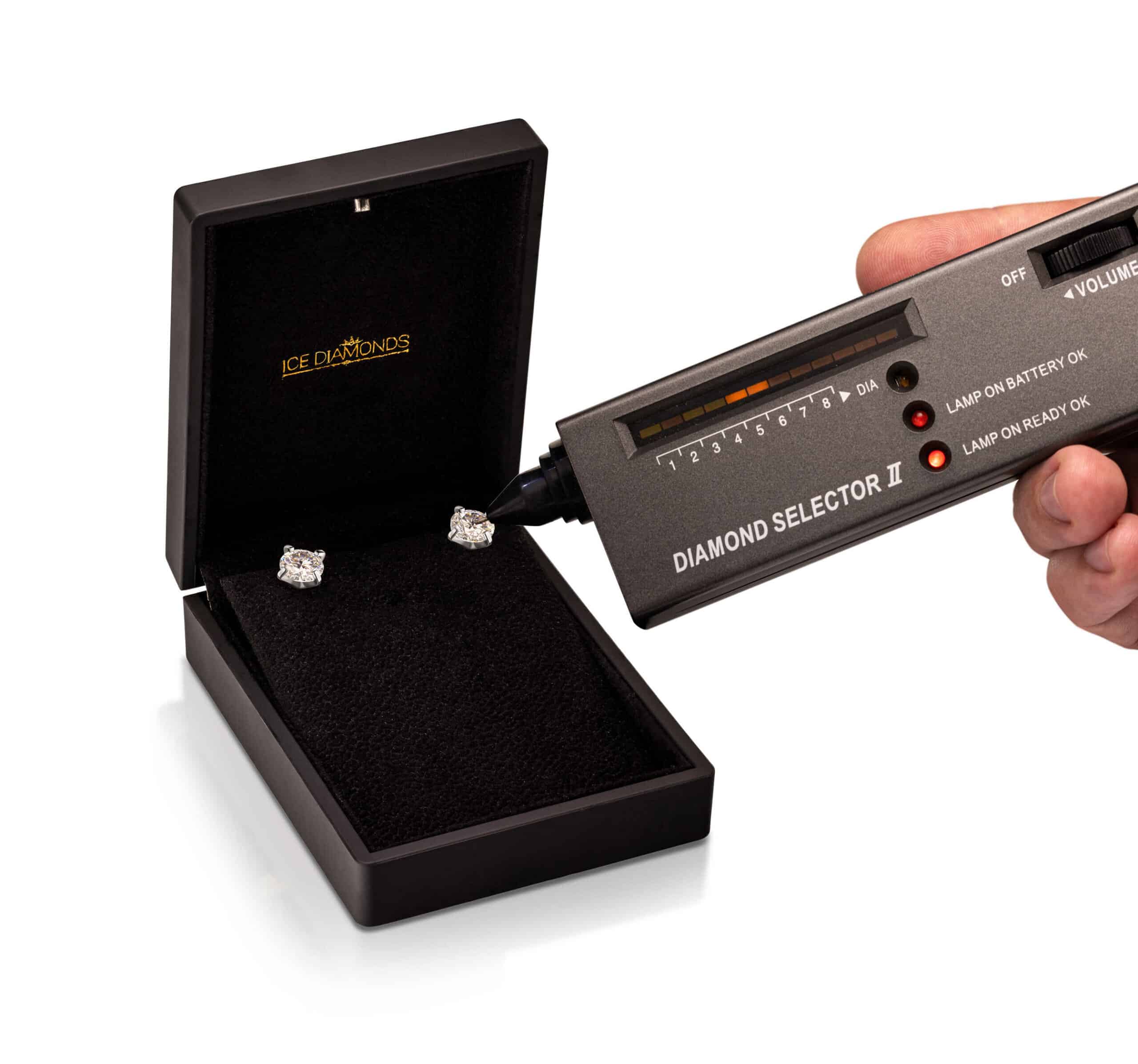 מבחר עגילי סוליטר יוקרתיים המגיעים עד שלוש קראט לכל צד, העגילים עשויים מזהב 14 קראט